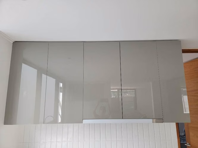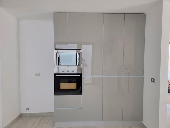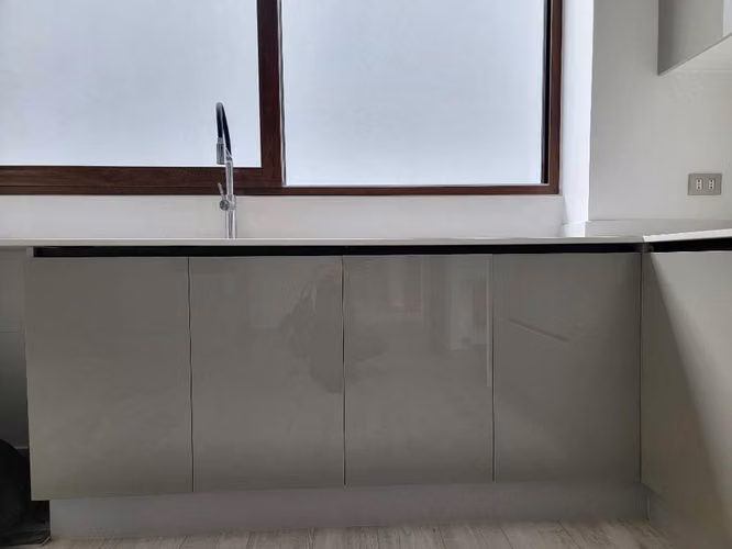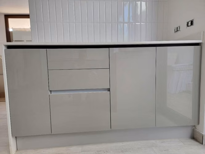 Puertas de muebles de cocina nuevos recién entregados por inmobiliaria.