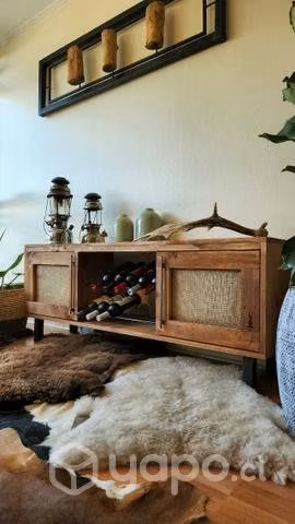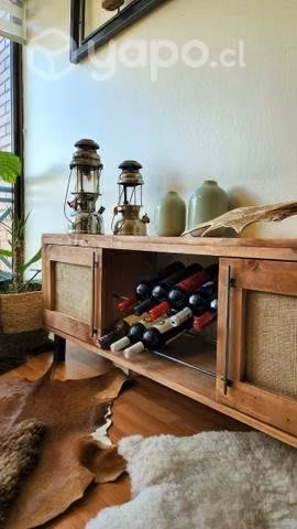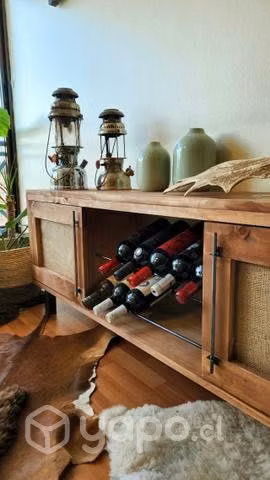Mueble Tv rack cava de vinos y puertas fabricado en madera maciza.