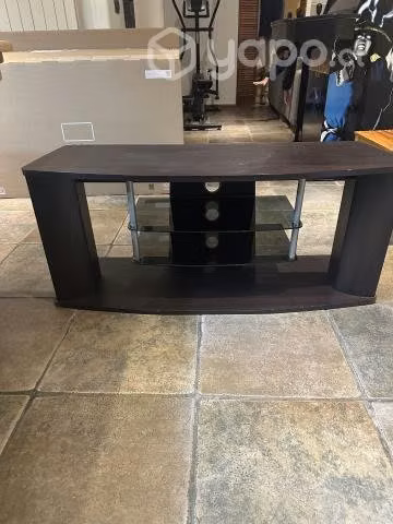 Rack TV, en buen estado, madera pesada. Tiene estantes de vidrio.
