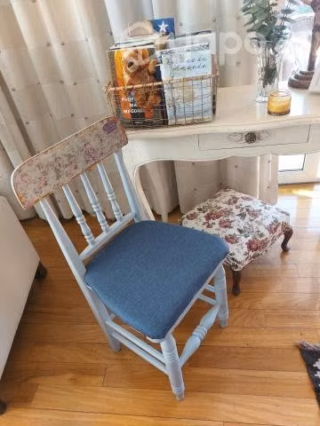 Par de sillas ,como nuevas .tonos grises,azules,celeste.Muy parecidas las dos.valor par.
