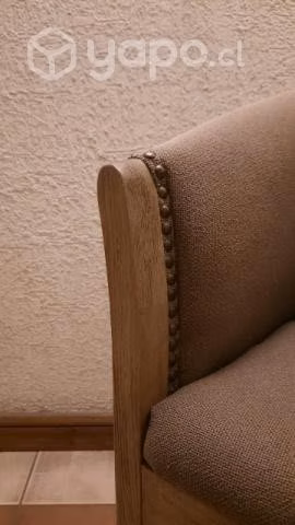 Sitial de madera y tapiz de algodón color verde musgo. Cómodo y compacto. Comprado años atrás en tienda Pórtico.