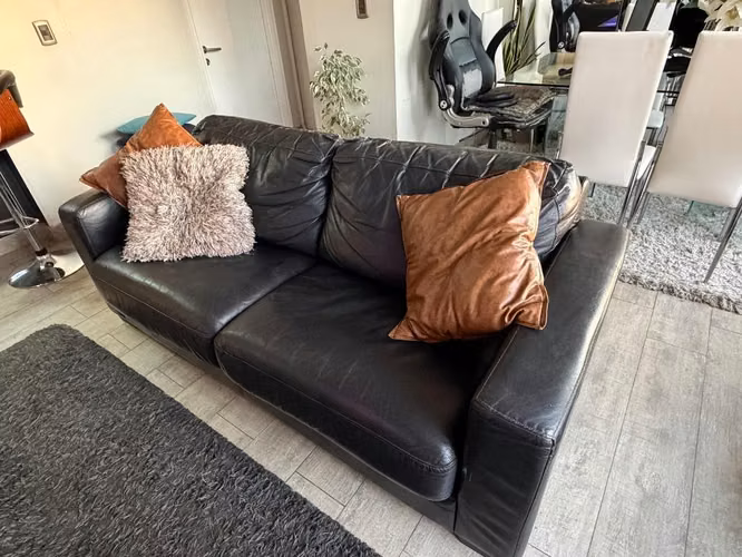 Sofá cama 100% cuero negro , no sintético , con cama de 2 plazas retráctil con su colchón, medidas de sofá es 1.90x87x80. ( largo, ancho, alto), nuevo sale 770 mil.