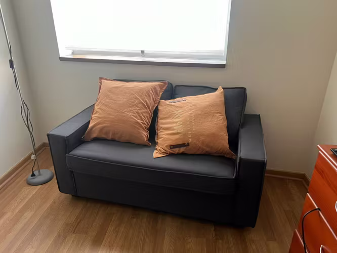 Sofá cama nuevo, 1.4 ancho por 1.9 mts extendido. Nuevo, sin uso. Vendo por viaje. Nuevo, comprado hace 1,5 mes.