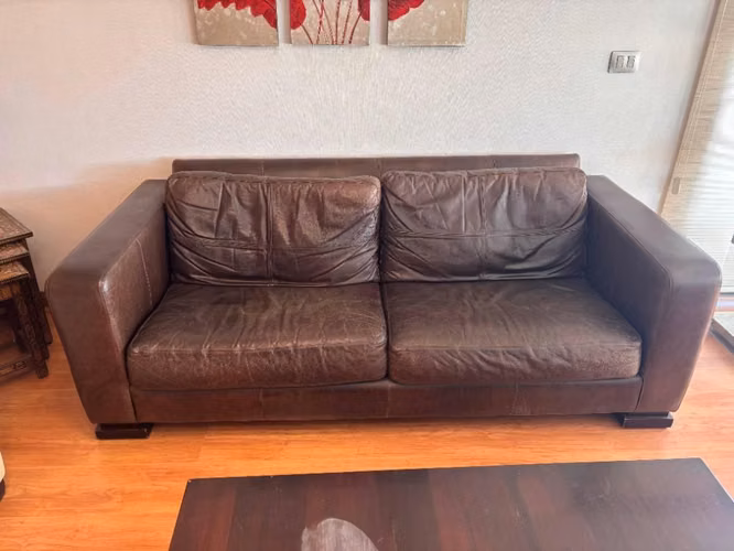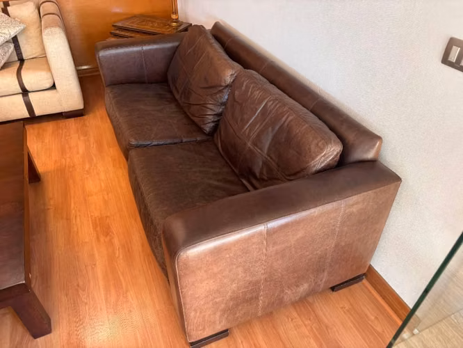 Por cambio de casa vendo excelente sofa de cuero 100 % natural de 2 cuerpos