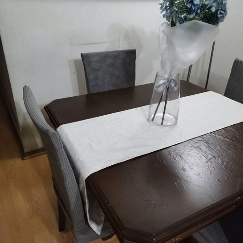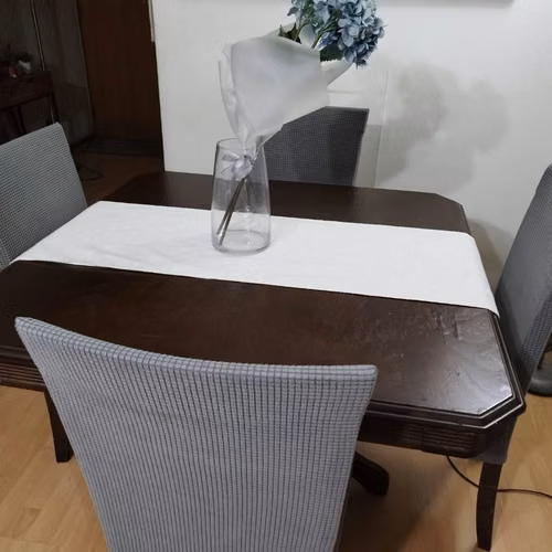 Vendo comedor meda cuadrada con 4 sillas. Las sillas hay que reforzarlas con tapicero. Las vendo con un forro para protección. La cubierta de la mesa está un poco inflada, pero con un camino de mesa no se nota. Es de buena calidad la madera.