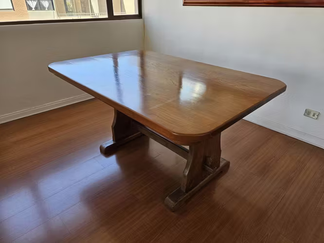 Vendo Mesa Comedor de madera de Castaño, la mesa mide 105 cms x160 cms x 76 cms de altura (tiene 4 cms de ancho). Para verla estoy en la comuna de Las Condes. Es solo la Mesa (SIN SILLAS)