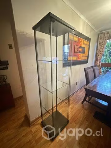 Vendo vitrina de vidrio con puerta magnética y luz interior, tiene 3 compartimentos.