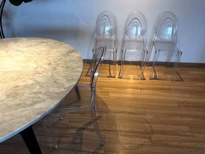 Impecables sillas transparentes, diseño elegante y moderno.