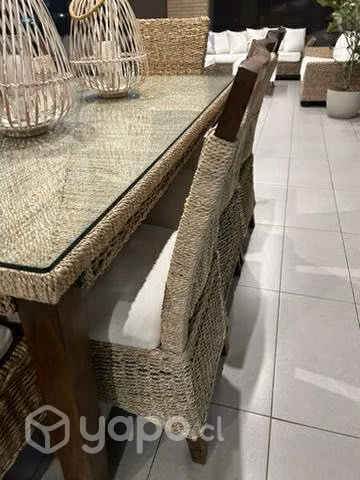 - Las CondesComedor vidrio 6 sillas estilo capitone
