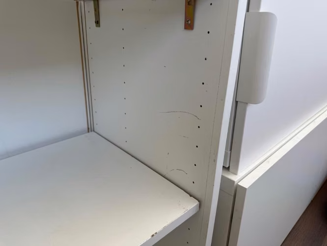 Estado: Bueno con detalles que se muestran en las fotos. Comprado 2023. Incluye bisagras de cierre suave Ikea y escuadras que pusimos para reforzar repisas. Precio referencia: 177.000