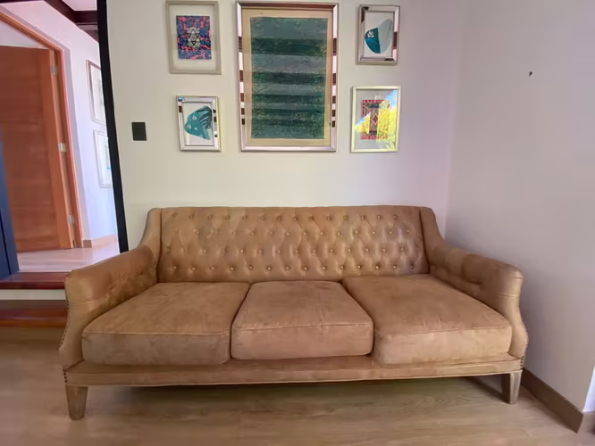 Se vende Sofa Capitoné Cuero 3 cuerpos