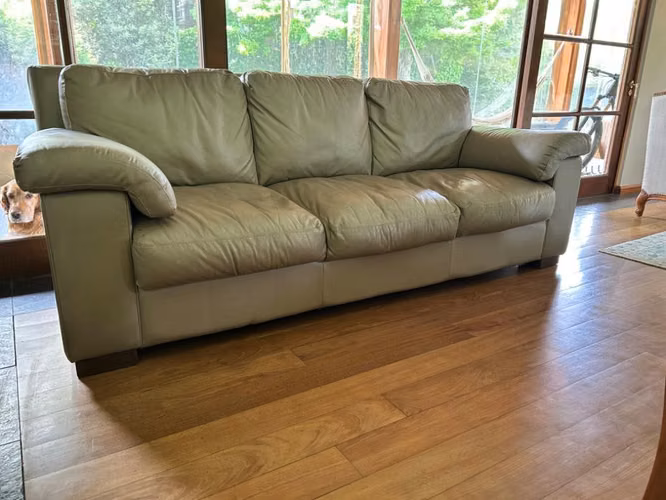 - ÑuñoaSofá de tres cuerpos en cuero color crema