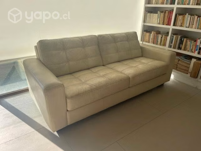 Sofá tres cuerpos, marca Rosen, tapiz cuero, excelente estado. Color crema.