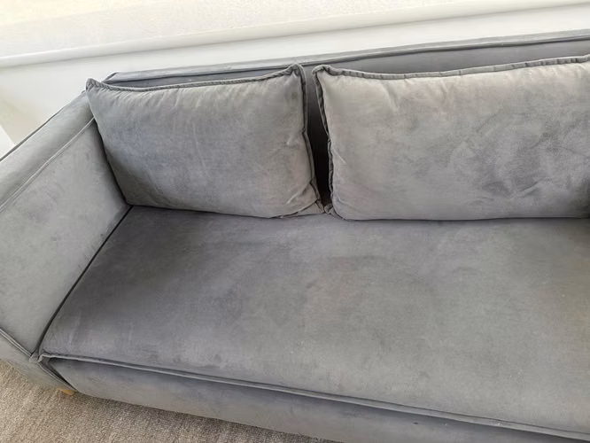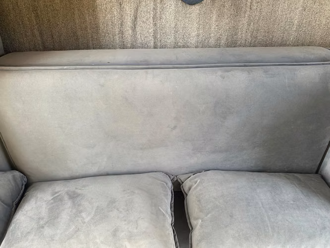 Tela velvet gris (terciopelo). Muy suave al tacto y muy resistente.