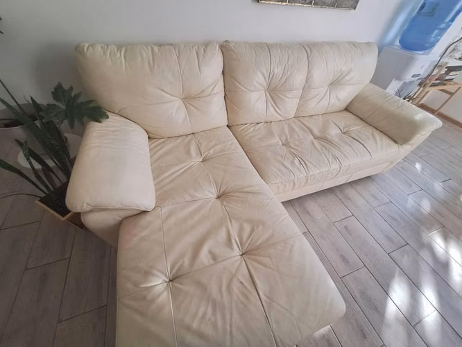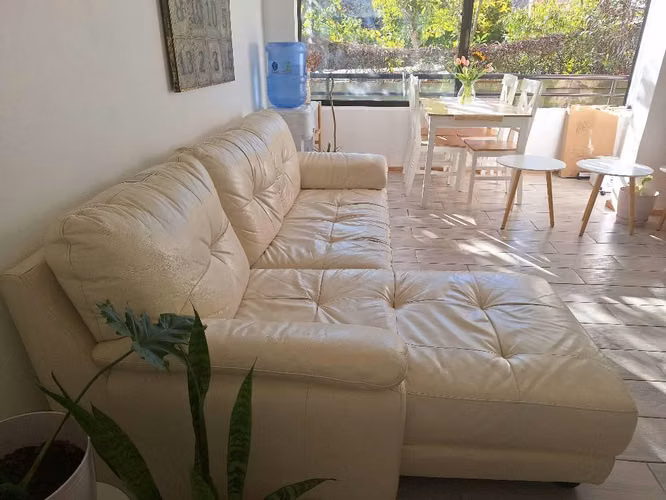 - ÑuñoaSofá de tres cuerpos en cuero color crema