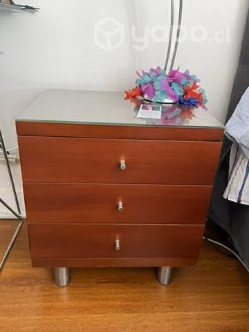 Velador enchapado madera 3 cajones con guías metálicas q corren muy bien, con vidrio en la cubierta para q no se manche ni raye
