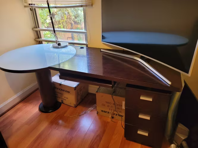 Escritorio moderno de la tienda Decostore, muy cómodo y robusto, se puede desarmar para transportar, se puede llevar en auto.