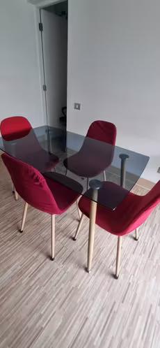 Vendo lindo comedor 4 puestos, mesa en vidrio, ideal para espacios pequeños, se encuentra en perfectas condiciones, vendo por mudanza