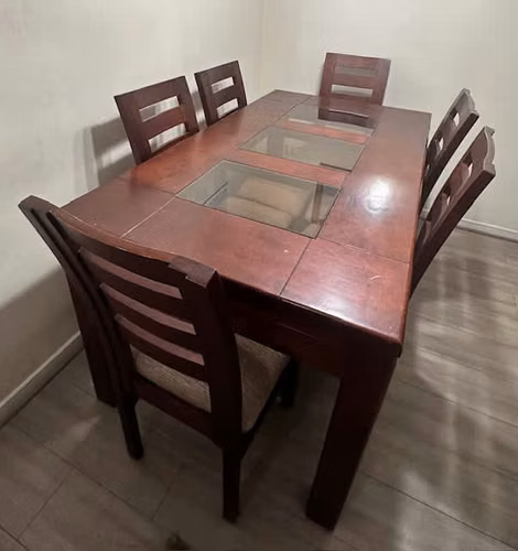 Se vende juego de comedor de madera color marrón oscuro 6 sillas.