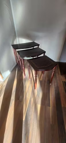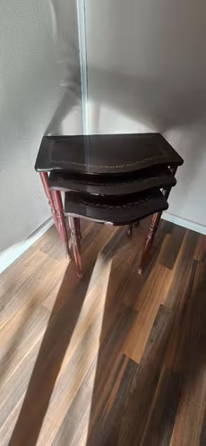 Juego de 3 mesas Auxiliares italy madera, laminilla desarmable.