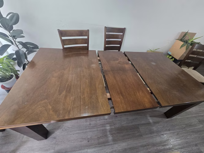 Comedor de madera, con 6 sillas, mesa es extensible, quedando espacio para 8 personas
