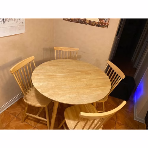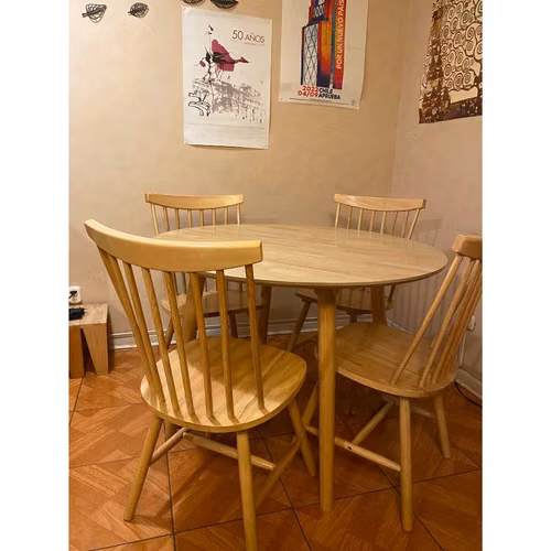 Se vende comedor usado de madera redondo, con 4 sillas. En buen estado, venta por no uso. Medidas de diámetro de mesa 1mt 06 cm. Se retira en comuna de Maipú.