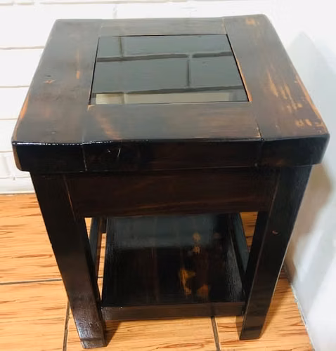 se vende hermosa mesa auxiliar de madera recien restaurada 37 cms largo 37 cms ancho y 50 cms alto ideal y convinable para cualquier espacio