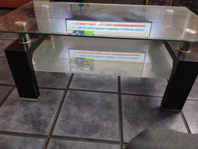 Mesa de centro vidrio y madera 1 metro y 10 Cms de largo y 60 Cms de ancho y 42 Cms de alto
