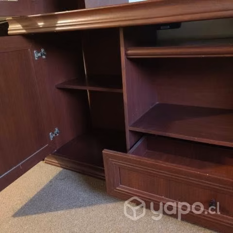 Hermoso librero-rack. Mueble con cajonera y puertas madera y vidrio.
