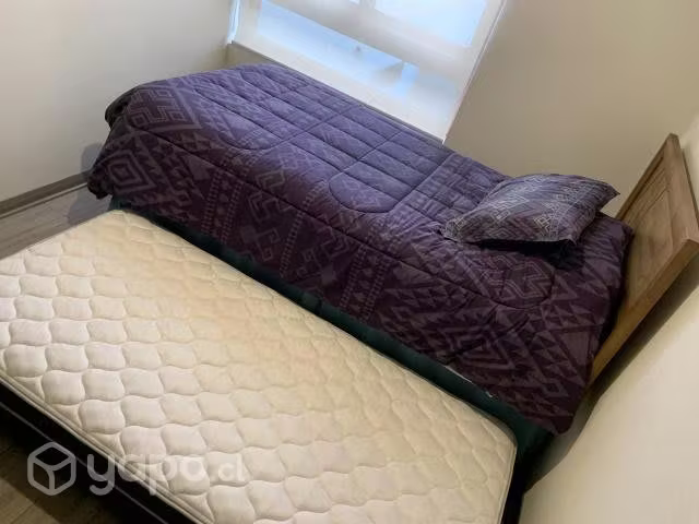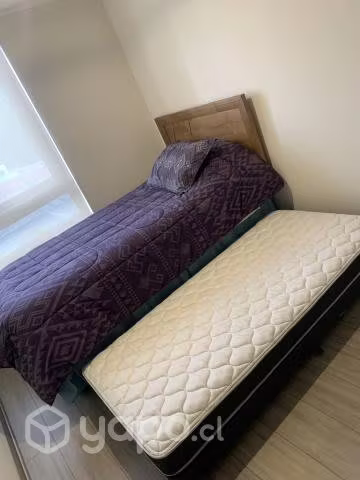 Se vende cama nido de plaza y media Rosen, con respaldo de madera y 2 juegos de sábanas incluidos. La cama tiene poco uso ya que está en un dormitorio secundario.