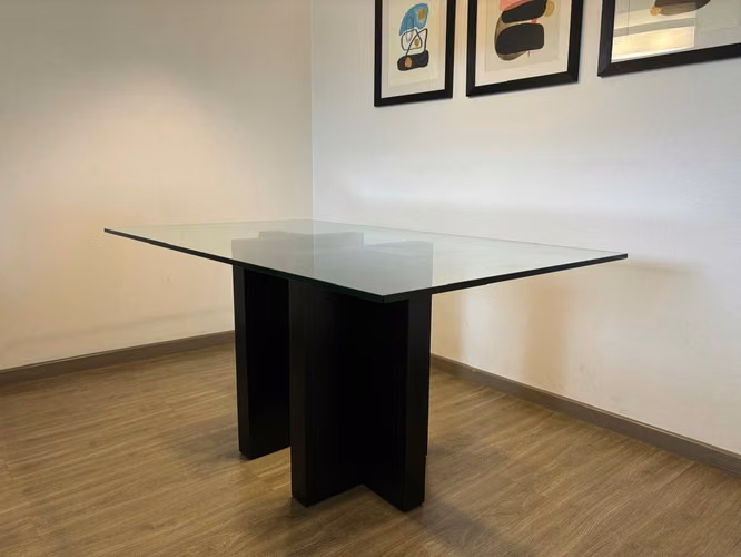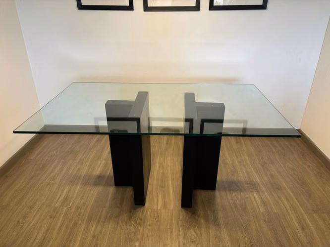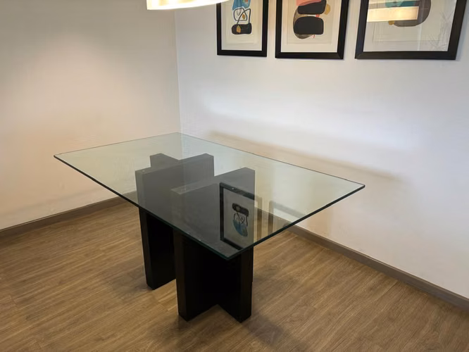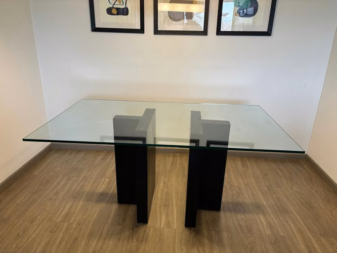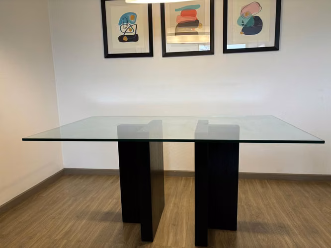 Se vende mesa de cristal y base de madera negra en impecables condiciones. Las dimensiones de la mesa son 160cm largo x 95cm ancho. Espesor de 16mm.