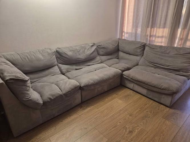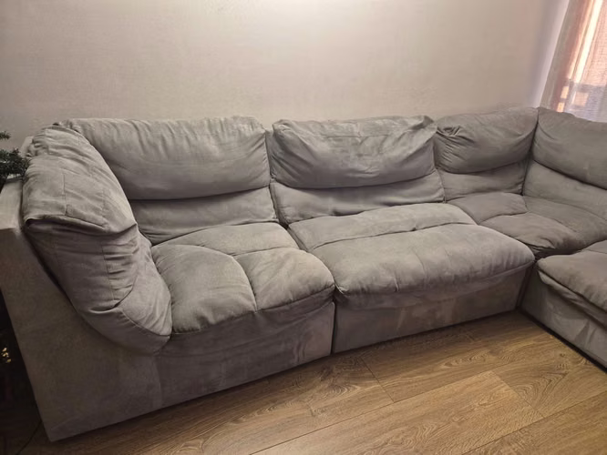 Se vende mueble en forma de L color gris de 4 cuerpos adaptable a cualquier espacio.