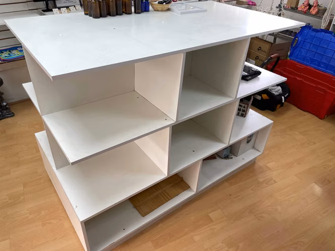 Isla de melamina ideal para negocio a $190,000. Mide 150cm de largo x 0.82cm de ancho y 116cm de alto.