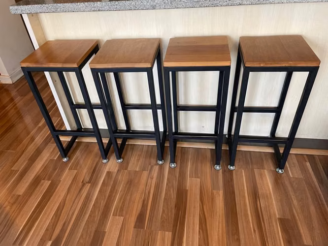 Se venden cuatro pisos con base metálica y asiento de madera de lengua, medidas alto 70 , ancho 30X30
