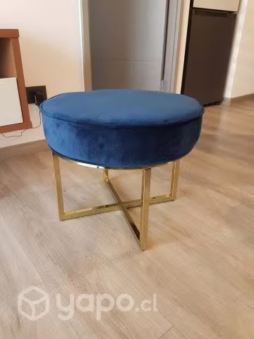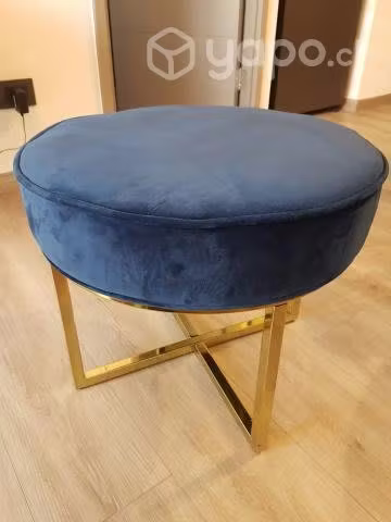Se vende pouf redondo color azul. Tela de terciopelo, patas doradas. En excelente estado.