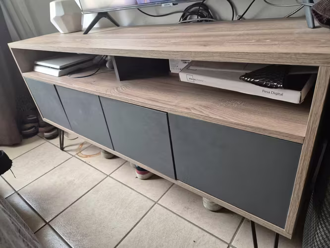 - AricaRack / Mueble TV color madera con puertas y ruedas – Viña del Mar