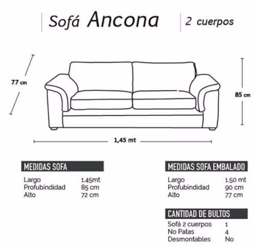 Dimensiones: Alto: 77 cm - Ancho: 145 cm - Profundidad 85 cm