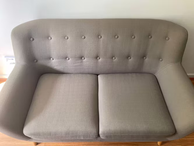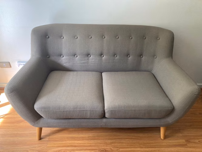 Sofá Rafaella II ROSEN, 2 cuerpos, gris, patas de madera clarita.