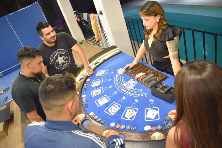 1.- crupiers (repartidor de cartas, mesa black Jack profesional con fichas profesionales