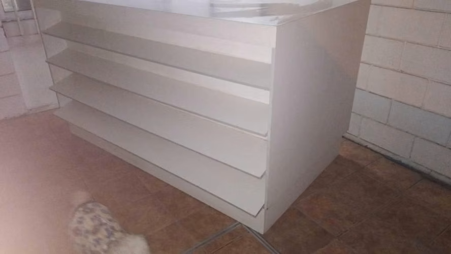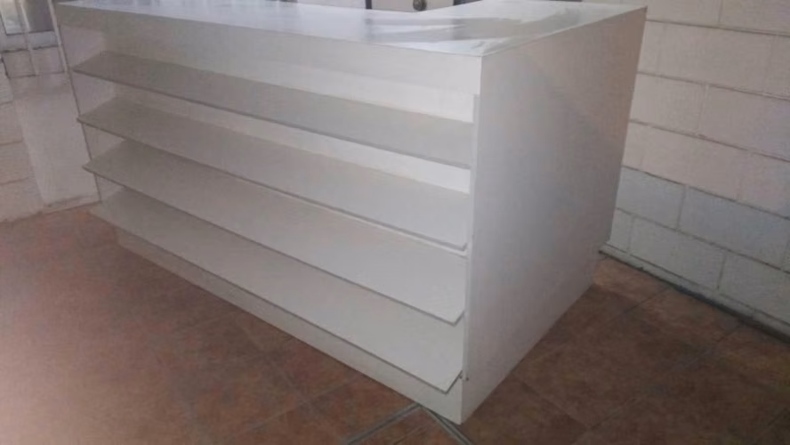 Mueble caja de melamina blanca con exibidor de mercadería, más dos cajas con llave, precio conversable.