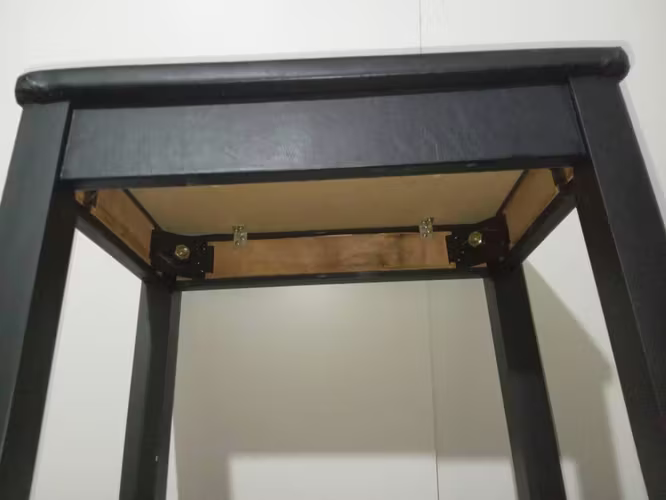 Asiento color negro. cojin forrado con eco cuero y estructura de madera pintada. perfecto estado.