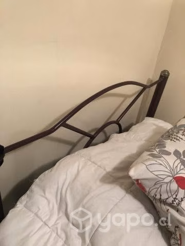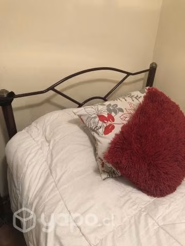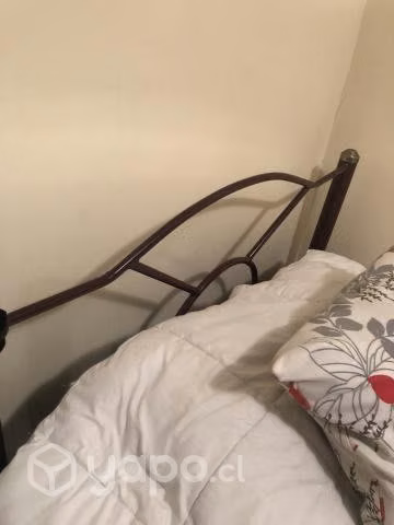Vendo cama de plaza y media en buen estado, incluido un colchón, cubre cama, juego de sabanas y frazada.