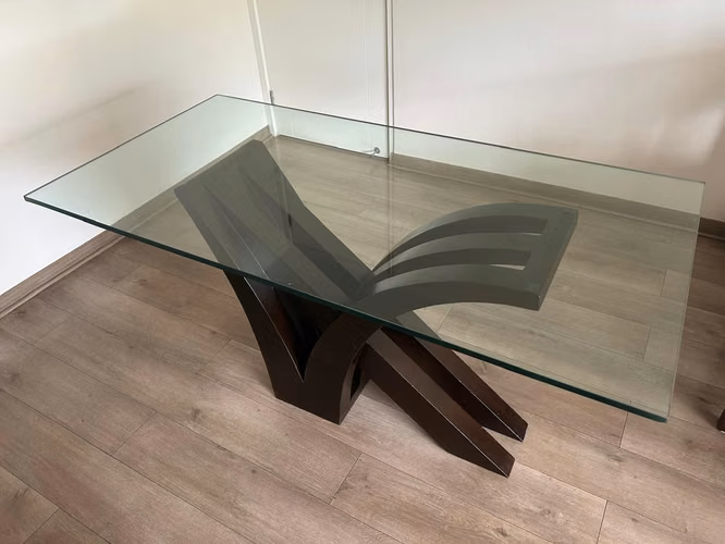 Comedor madera con cubierta de vidrio de 160 x 80 cm