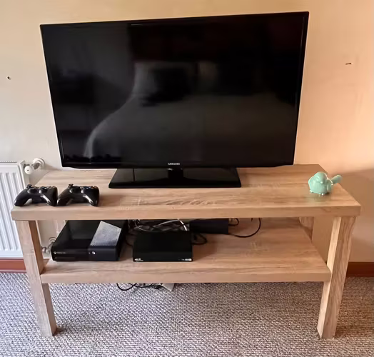 En excelentes condiciones Rack Tele, Beige madera 120 x 40 x 60 (ancho x fondo x alto)