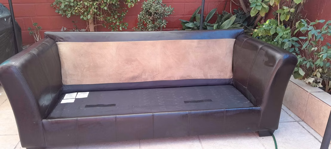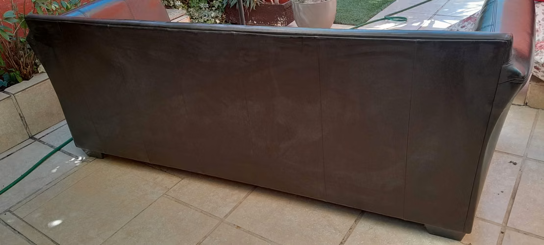 Vendo Sofá grande marca Rosen en muy buen estado, usado. Material base cuerina, café oscuro en excelente condición. Resto base de material color marrón claro.