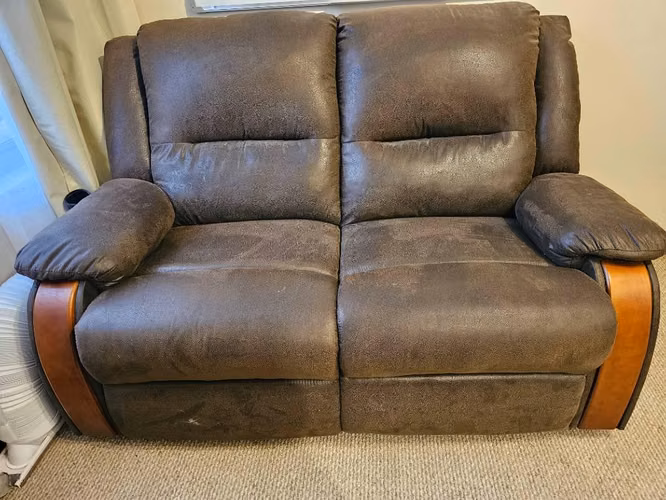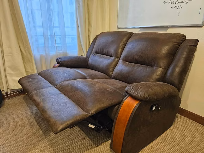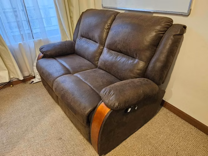 Usado, excelentes condiciones, reclinable de 2 cuerpos independientes. Tapizado en chenill cafe. Marca CIC.