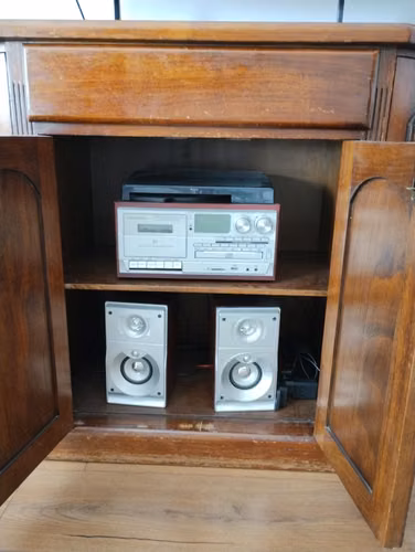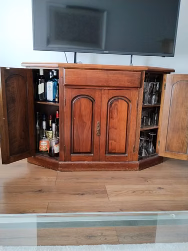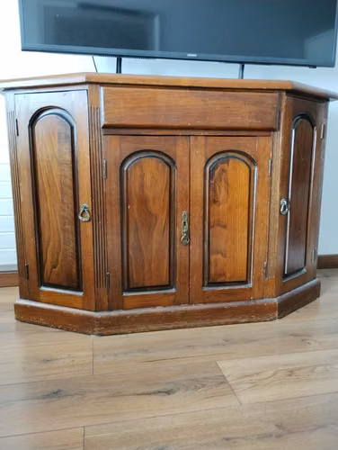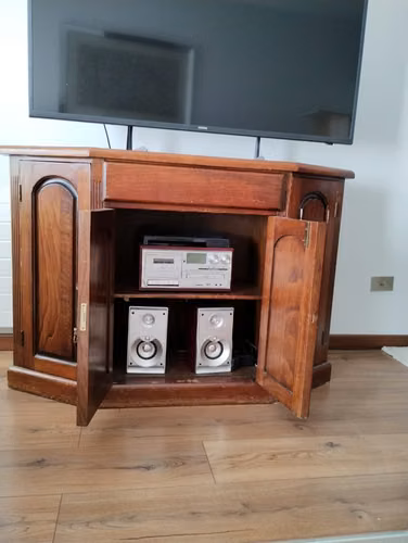 Buffet de madera natural en buen estado se puede usar para colocar TV y en su interior usar como bar, se puede usar de varias formas.