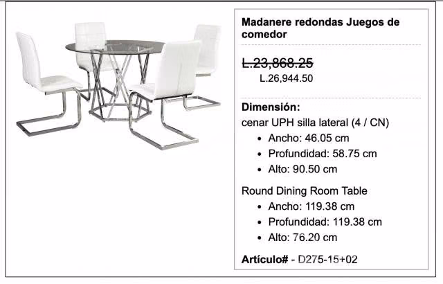 Ancho de la mesa: 119,38 cm