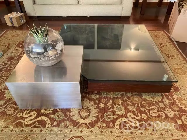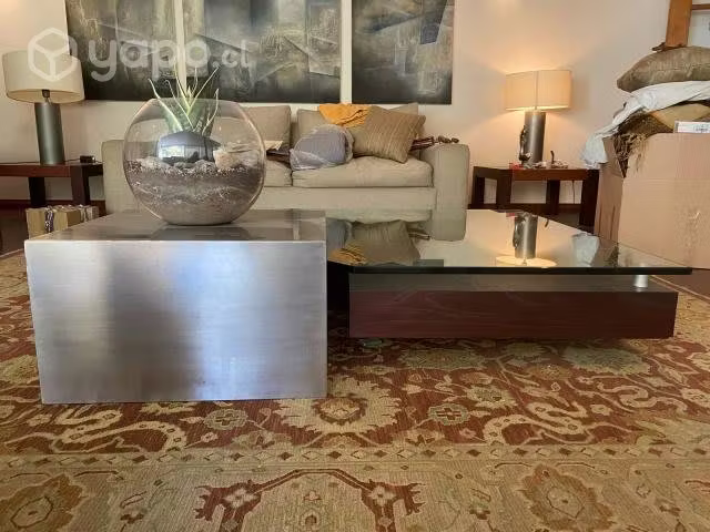 Se vende mesa de centro para living, cuenta con dos estructuras (la metálica, y la que tiene base de madera).
