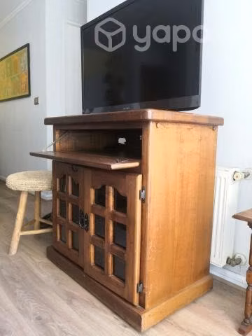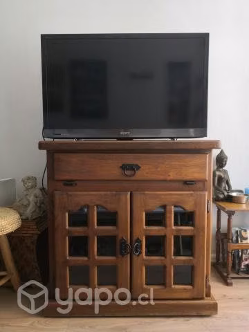 Mueble de madera nativa en excelente estado, con 3 puertas ideal para TV o equipo de música, en la parte posterior tiene perforaciones para pasar cables y se desplaza fácilmente con rueditas.